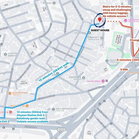 Обладнана кухня з електрочайником, холодильником і кухонним приладдям є частиною зручностей для самостійного приготування їжі в цьому помешканні. Гості також можуть сісти на автобус на автовокзалі Ahyeon, розташованому лише за 5 хвилин ходьби, щоб оглянути решту Сеула.
